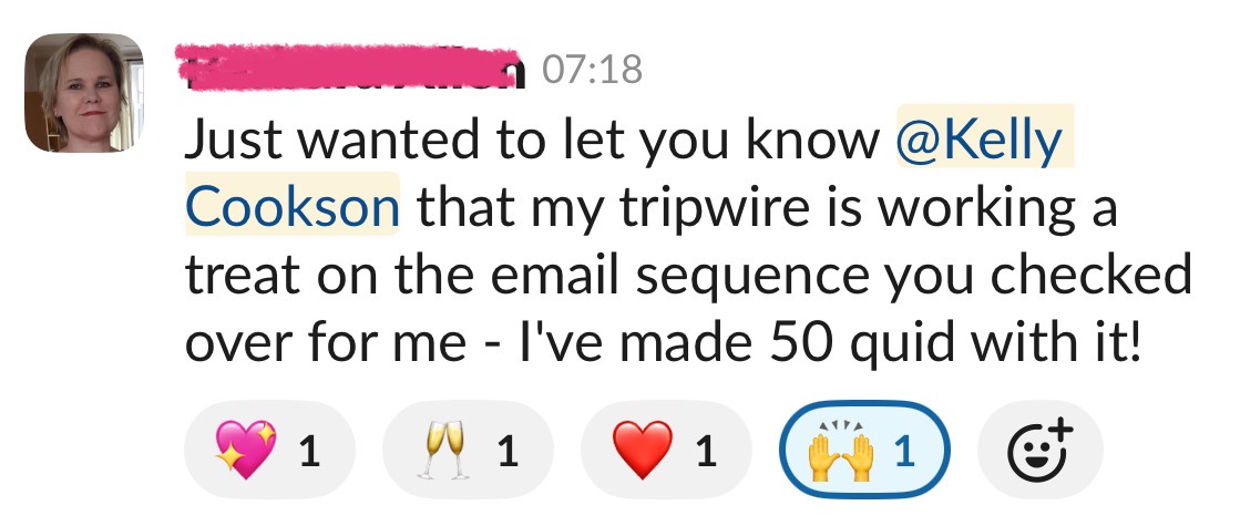 “Kelly has great ideas for improving my emails. The Spark gives me weekly email ideas that I have adapted or used as a basis for some of my newsletter. I've seen an increase in engagement with my emails using her techniques and support, thank you, Kelly!”